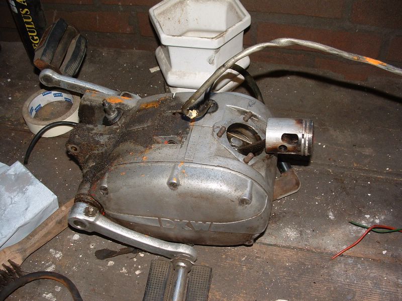 Voor blok helemaal uit elkaar gaan halen eerst maar een kijken of dit wel nodig is. Wel een nieuwe overmaatse zuiger gekocht en de cilinder op laten boren. |