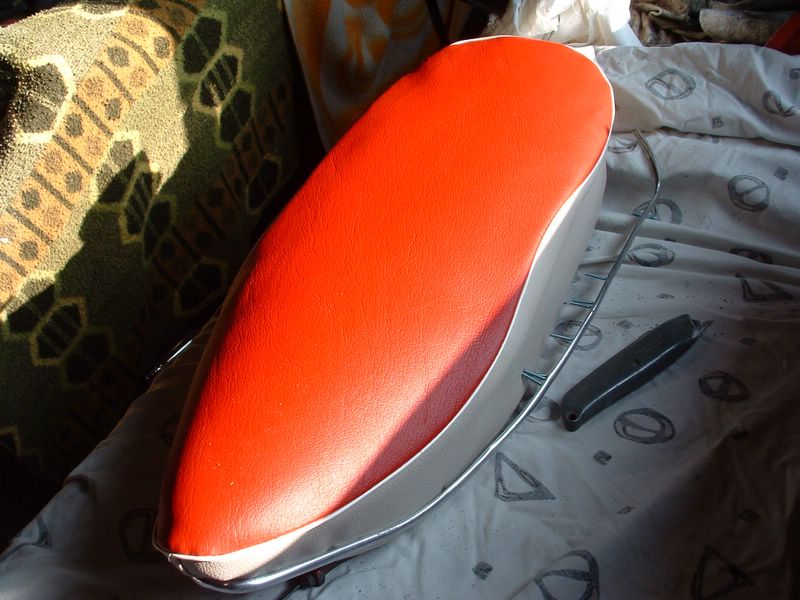 Oude zadelovertrek vervangen door een nieuwe. |