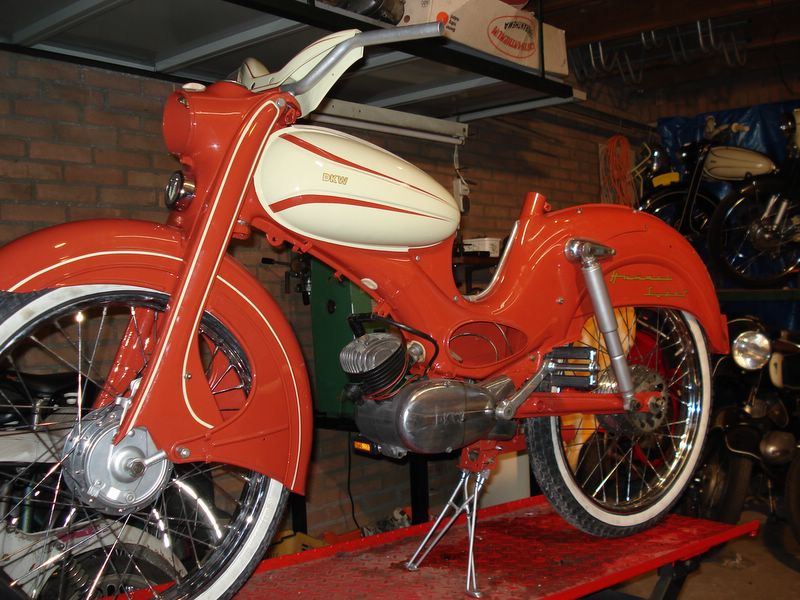 De benzinekraan voor deze brommer is altijd spannend of hij dicht is, gelijk toen ik de brommer uitelkaar heb gehaald is de kraan in een potje met benzine gegaan. Gelukkig, hij sluit goed af. |